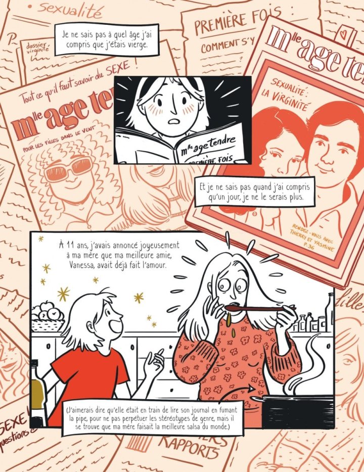 L’ouvrage débute sur le témoignage de la jeune Elise Thiébaut. Née dans les années 1970, l’autrice, dessinée par Elléa Bird, se livre sur ses premiers questionnements sur la sexualité.